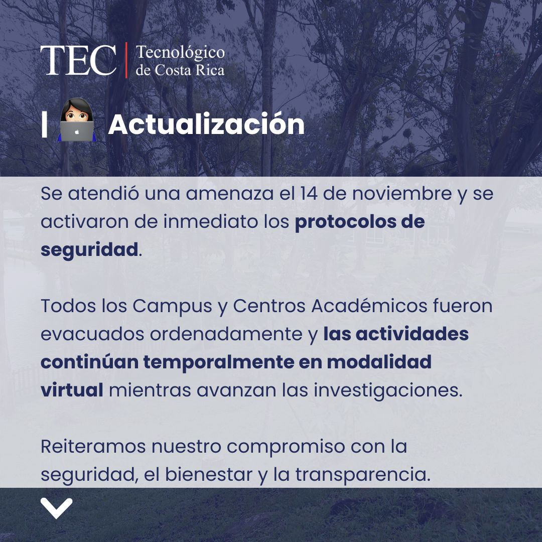 El TEC mantiene comunicación constante con las autoridades correspondientes del Poder Judicial. Hemos reforzado temporalmente las medidas de control y vigilancia en nuestros campus y sedes, siguiendo los lineamientos oficiales.