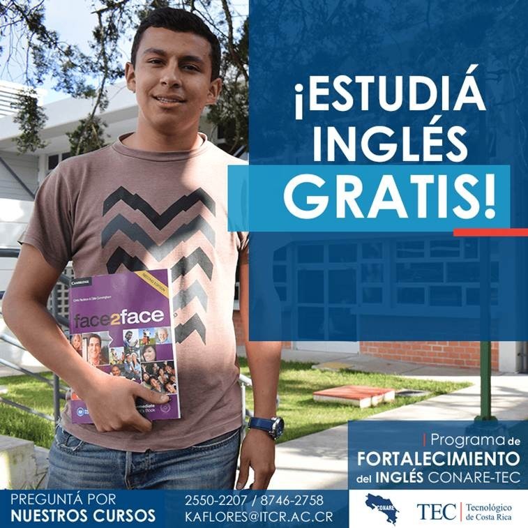 Si usted es estudiante o funcionario del Tecnológico de Costa Rica (TEC) y desea aumentar su dominio del idioma inglés, este es el momento exacto para que se matricule en el programa que le ofrece el Consejo Nacional de Rectores (Conare) por medio de la Escuela de Ciencias del Lenguaje.