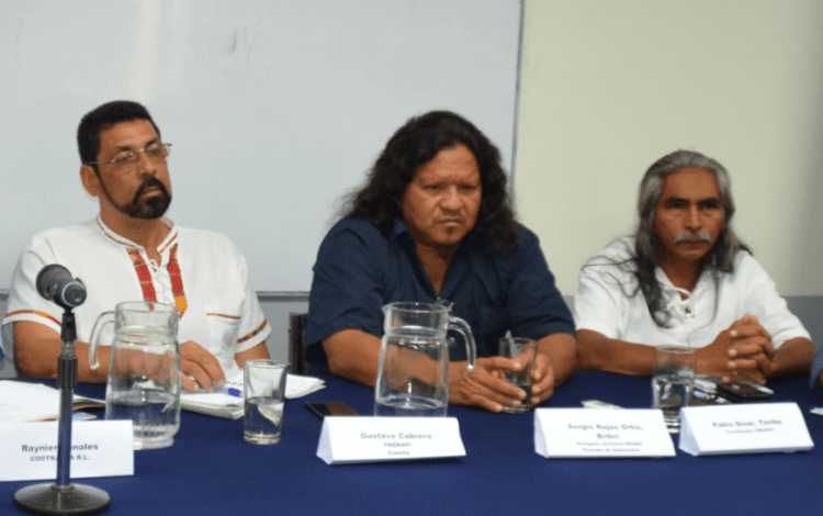 El representante indígena Sergio Rojas (al centro) fue asesinado recientemente por razones que aún se encuentran en investigación por las autoridades. Imagen de una visita realizada por Rojas hace unos años al Tecnológico. Foto: Archivo/OCM.