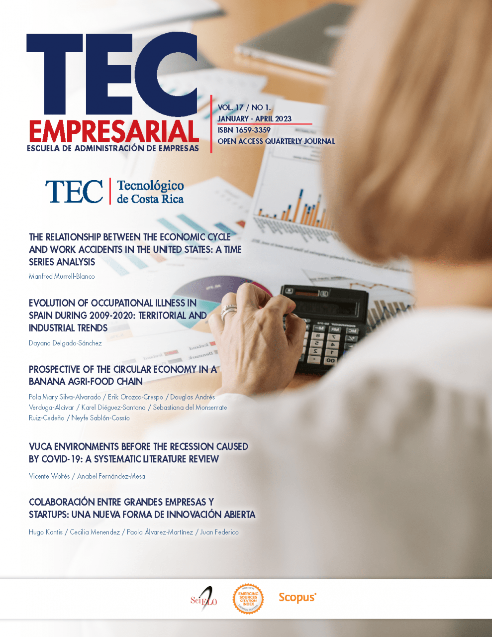 “Los artículos tratan temas de accidentes laborales y ciclos de la economía, enfermedades ocupacionales, economía circular, turbulencia económica, así como innovación abierta. Y los autores provienen de universidades ubicadas en Argentina, Costa Rica, Ecuador y España”.