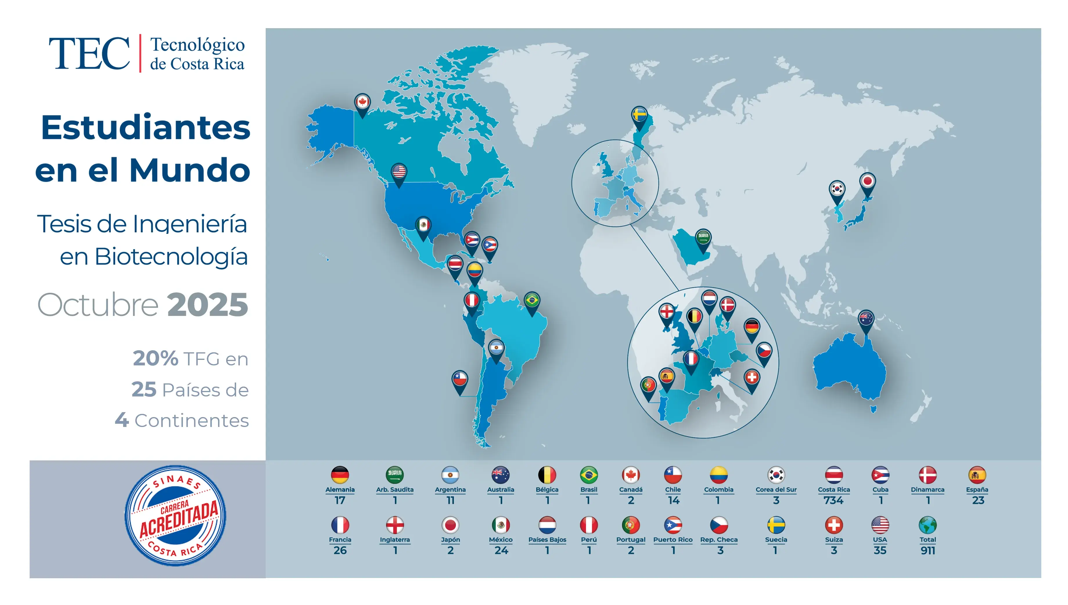 El programa de bachillerato de la carrera de Ingeniería en Biotecnología está acreditado por el Sistema Nacional de Acreditación de la Educación Superior (SINAES), desde el año 2007.