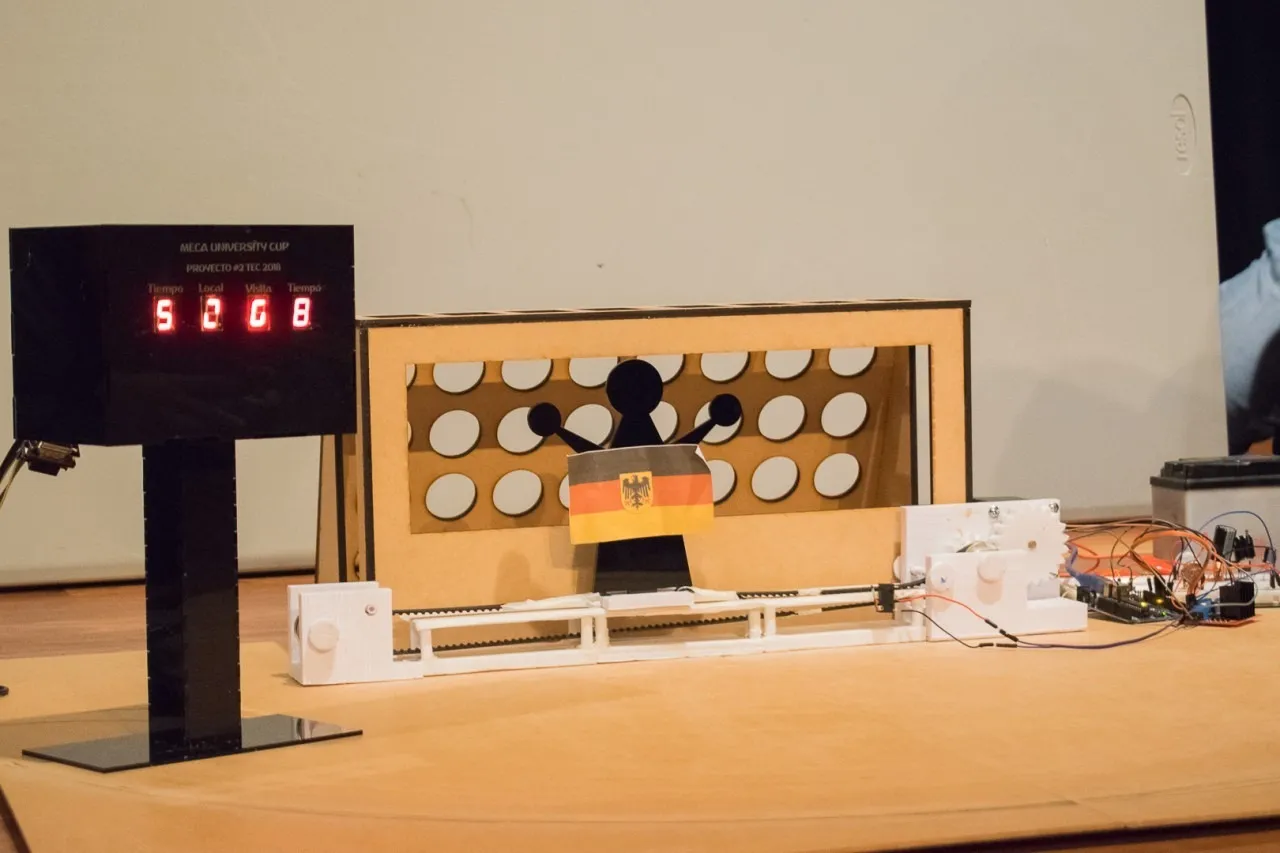 Además del arquero y tirador, los alumnos crearon un sistema de conteo de goles (marcador), un amplificador de sonido y un dispositivo que sirve para detectar si los balones ingresan a la portería.