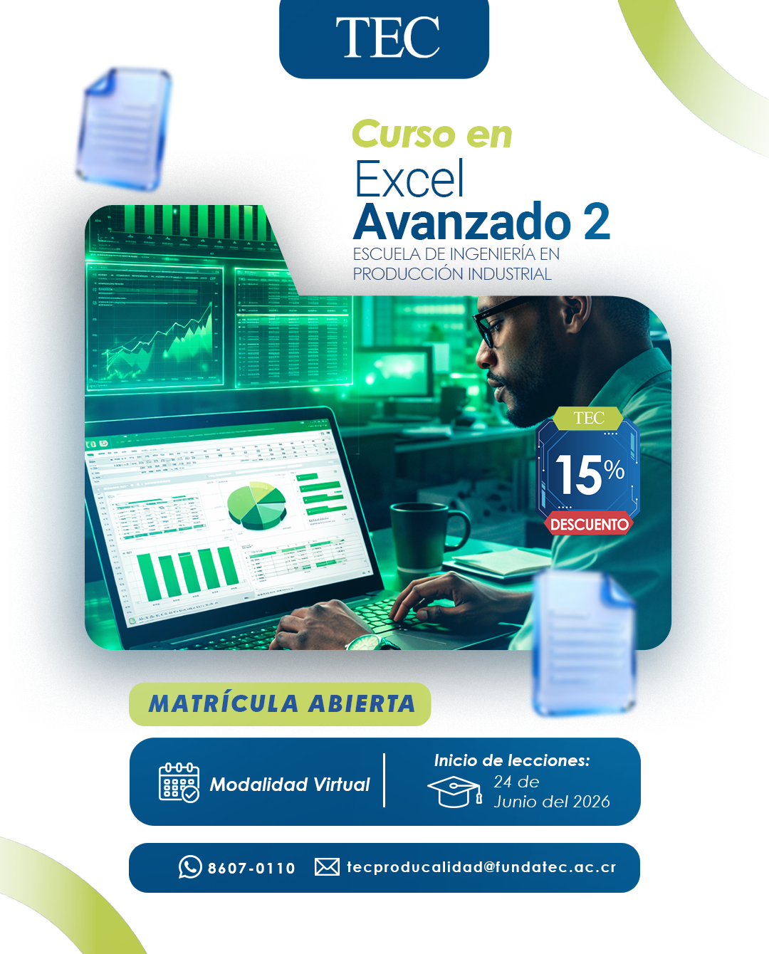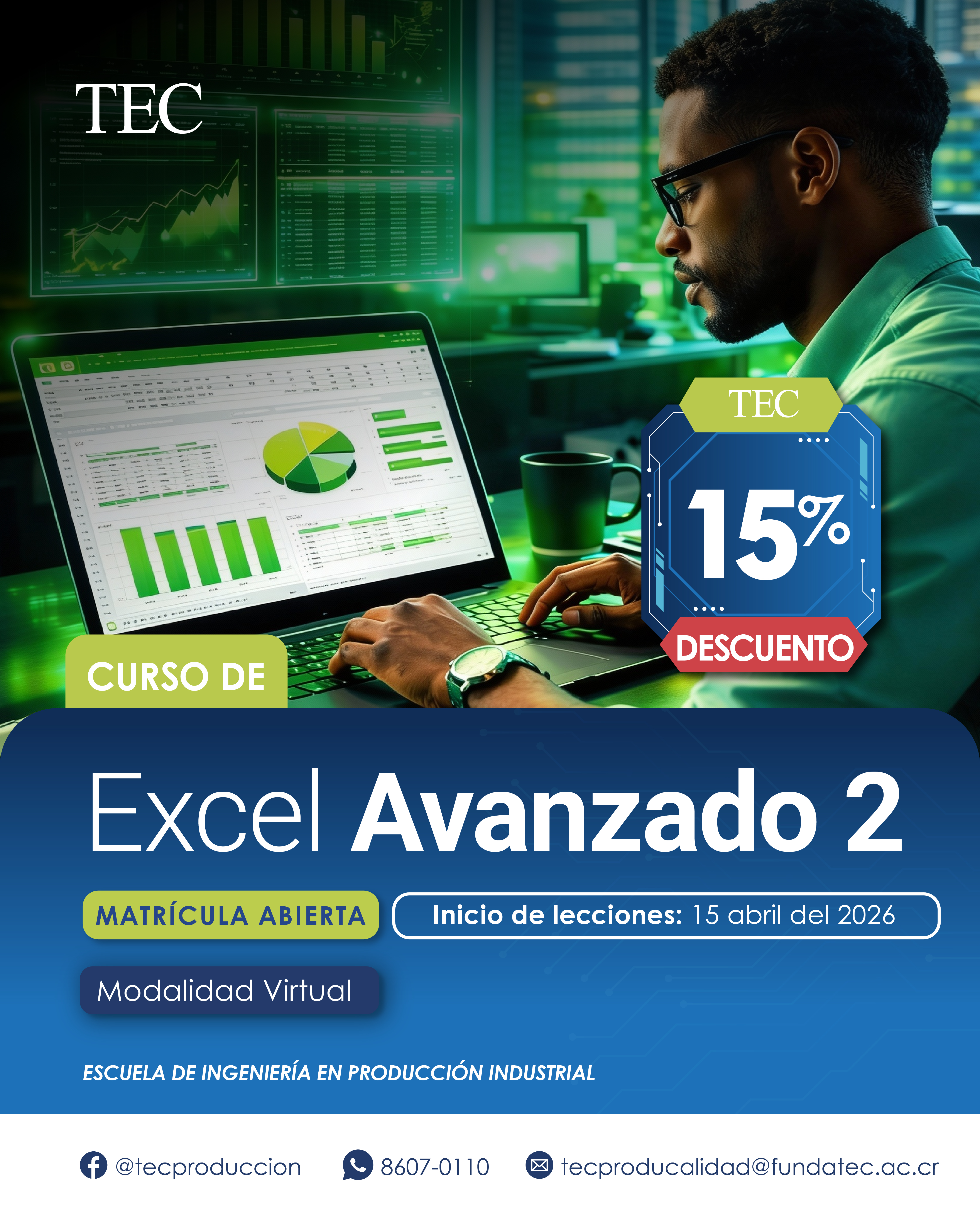 Descuento del 15% aplicable durante la fecha de matrícula disponible