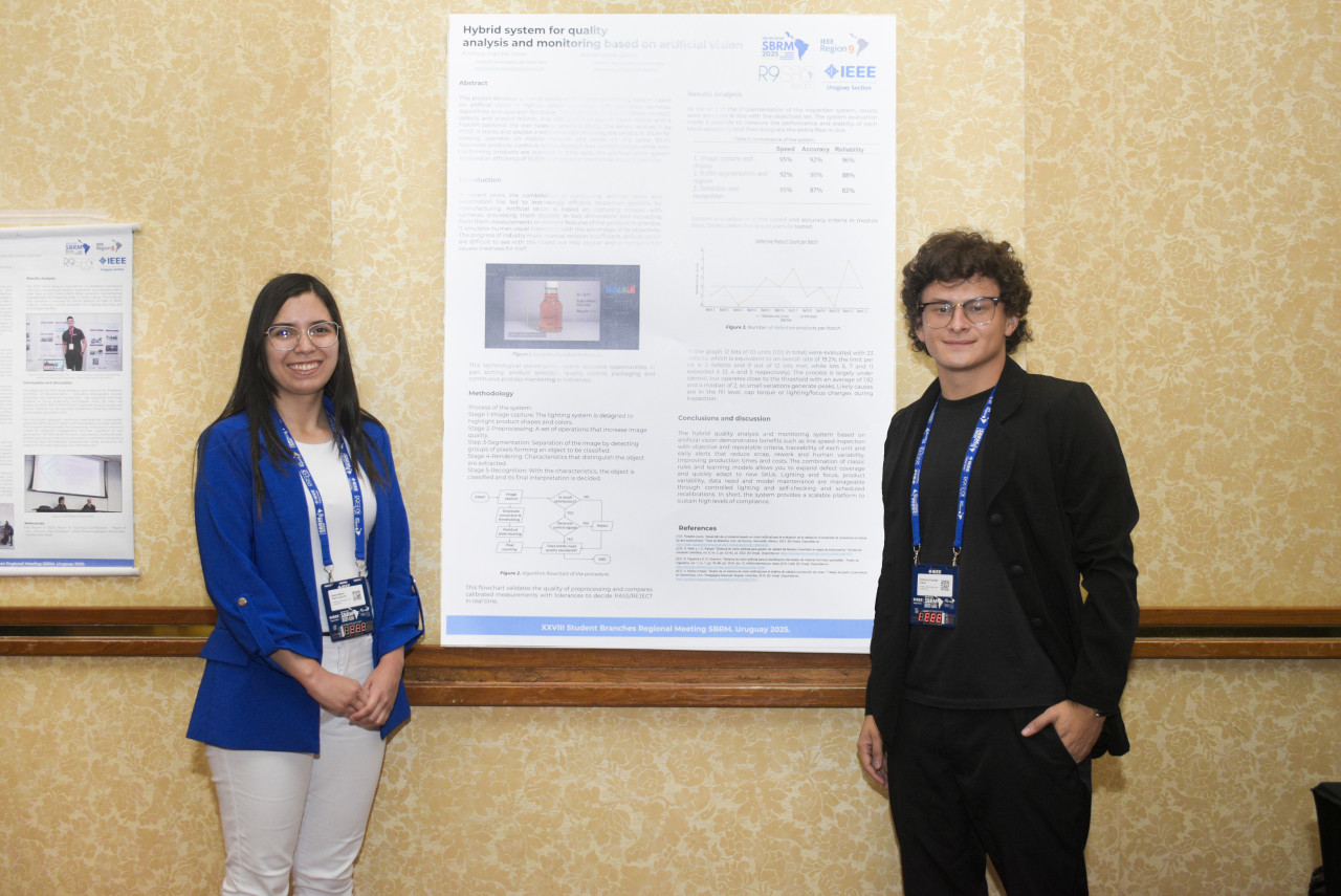 Por ejemplo, Isaura García, estudiante de Ingeniería en Producción Industrial, y Anthony Fuentes, estudiante de Ingeniería en Computación, presentaron el póster “Hybrid system for quality analysis and monitoring based on artificial vision”. Para Fuentes, esto significó un orgullo: