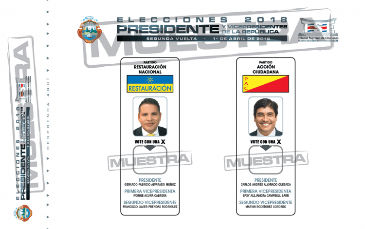 Papeleta para la segunda vuelta de las elecciones, que se realizará el próximo 1.º de abril. Imagen tomada de tse.go.cr.