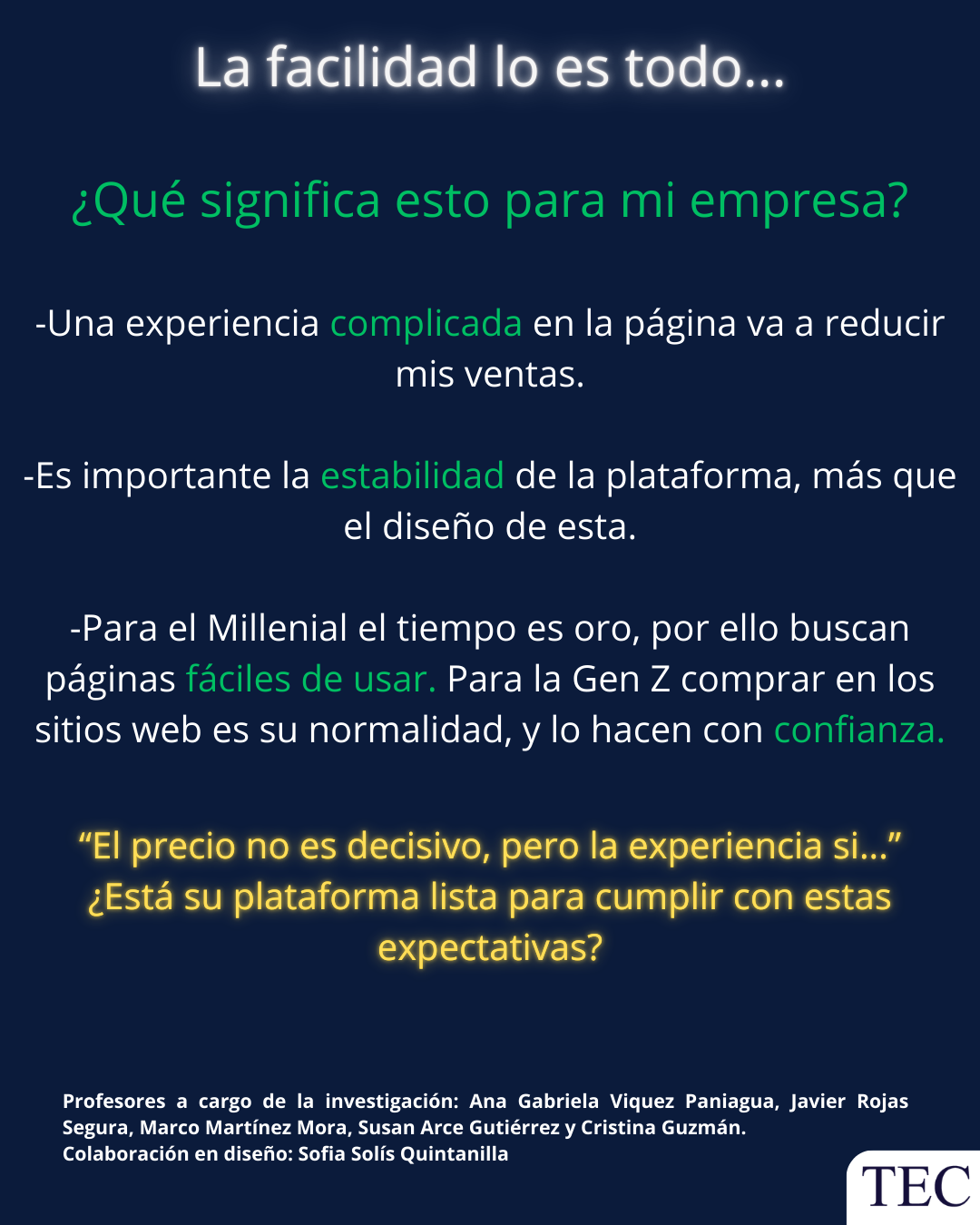 Los resultados del estudio sugieren que las empresas costarricenses deben enfocar sus esfuerzos en la mejora continua de sus plataformas digitales, con énfasis en la velocidad de respuesta, la estabilidad de los sistemas y la optimización de la experiencia de usuario. Entre las recomendaciones destacan la realización de pruebas de estrés en servidores, el fortalecimiento de interfaces y la implementación de mecanismos de garantía técnica.