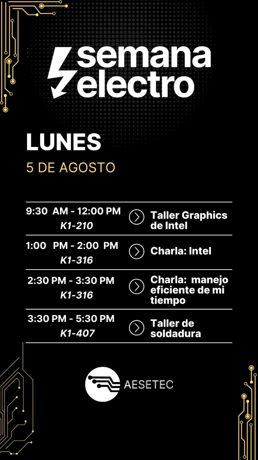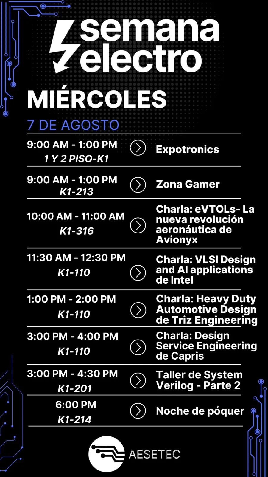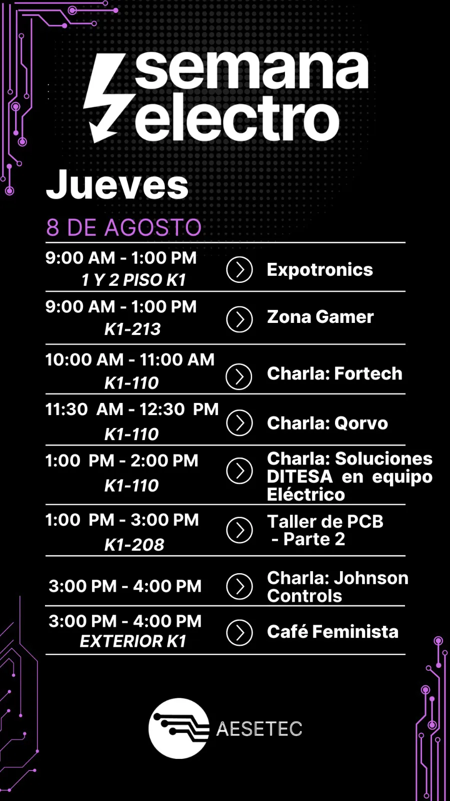 Expotronics, se realizará el miércoles 7 y jueves 8 de agosto, de 9:00 a.m. a 1:00 p.m. en el edificio de la Escuela de Ingeniería Electrónica - Cartago (Edificio K1).