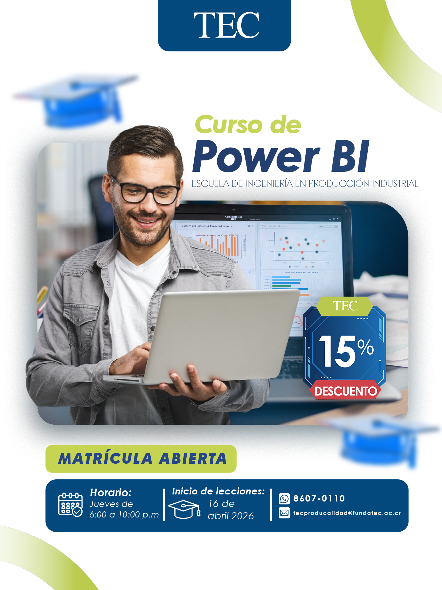 Descuento del 15% aplicable durante la fecha de matrícula disponible