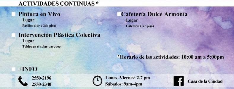 Como parte de las actividades usted podrá disfrutar de una maravillosa exposición de pinturas y a la vez tendrá la oportunidad de compartir con sus creadores.