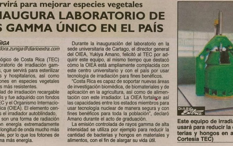 Por su parte, “Diario Extra”, “El País” , “CR Hoy.com” y "La Prensa Libre" destacan la innovación del TEC con su nuevo y exclusivo laboratorio de irradiación gamma, inaugurado la semana anterior.