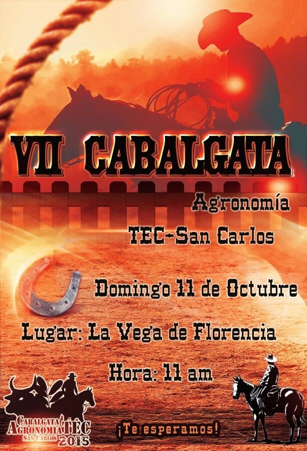 Como parte del fortalecimiento de la base académica y la formación empresarial de los estudiantes de Agronomía de la Sede Regional de San Carlos, la Asociación de esta carrera está organizando la edición VII de la Cabalgata que se realizará el domingo 11 de octubre a las 11:00am en la Vega de Florencia.