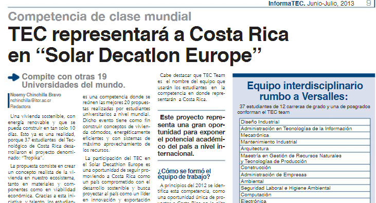 Además, en el perfil de Twitter del TEC se leyó: “"¡Orgullo Tico! Costa Rica realizó un papel notable en competencia mundial. El proyecto Trópika de estudiantes del TEC… obtuvo el primer lugar como casa favorita del público. Felicidades muchachos. Dejaron en alto el nombre de CR y del TEC".