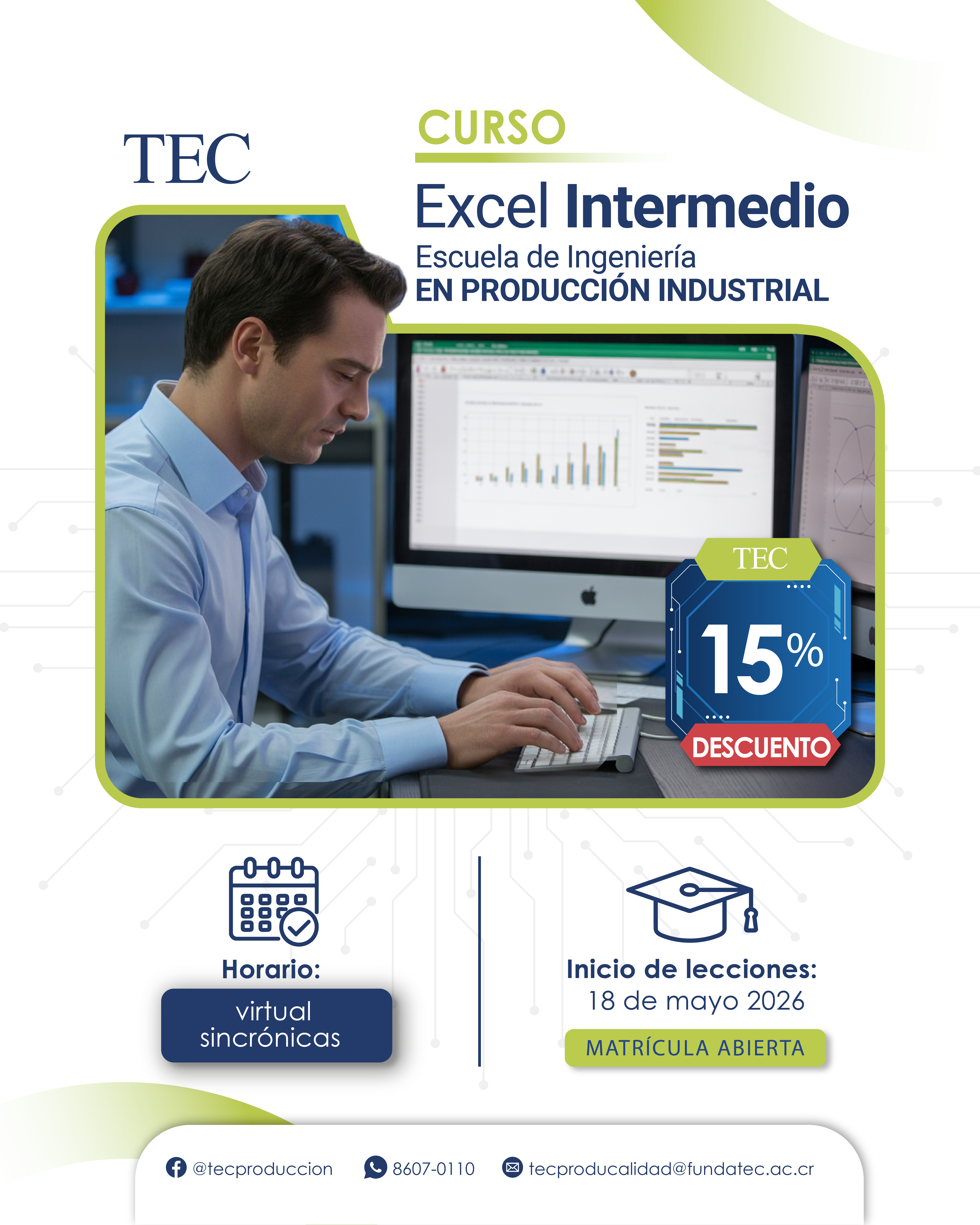 Descuento del 15% aplicable durante la fecha de matrícula disponible