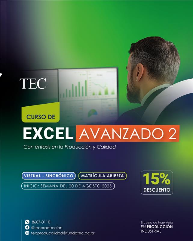 Este curso principalmente se enfoca en la utilización de Excel en la administración eficiente de los datos, al integrar, buscar, procesar, compartir y asegurar, de forma eficiente la información que se requiera en el ámbito de la mejora de la Calidad y la Producción.
