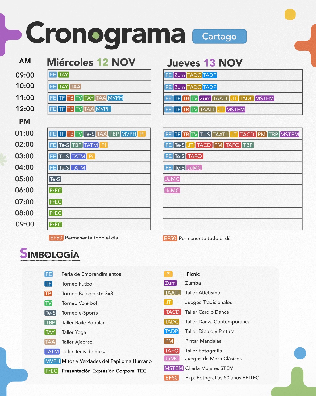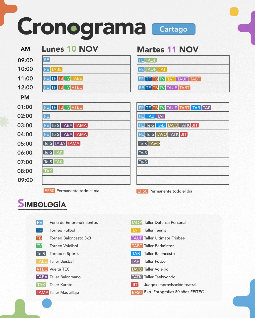 El FESTEC ofrece una agenda variada y emocionante para todos los gustos, desde tempranas horas de la mañana hasta la noche. A continuación, se destacan algunas de las actividades en el Campus Tecnológico Central Cartago: