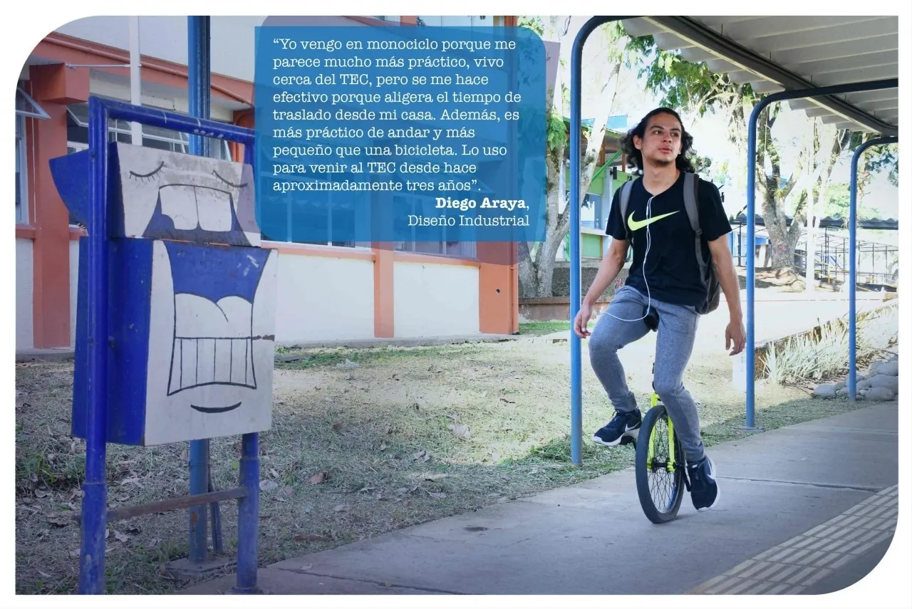 En un día soleado las bicicletas y otras formas inusuales de transportarse son ideales para venir a estudiar al TEC. Aunque para muchos más que lluvia o sol, caminar es el medio usual para contribuir con el ambiente y de paso favorecer al bolsillo. Así como andar en bicicleta es una forma de realizar actividad física y estar saludable.