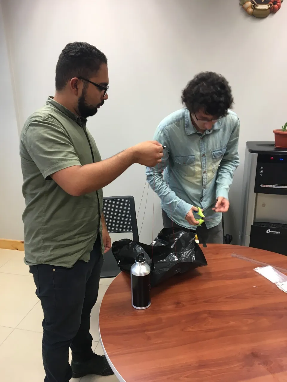 En el BootCamp los estudiantes se dividieron en cinco grupos dedicados a la contrucción de los CanSats. El domingo en la mañana fue la prueba final: cada aparato fue elevado a 50 metros de altura y debía transmitir cierta información. ¡Todos funcionaron!