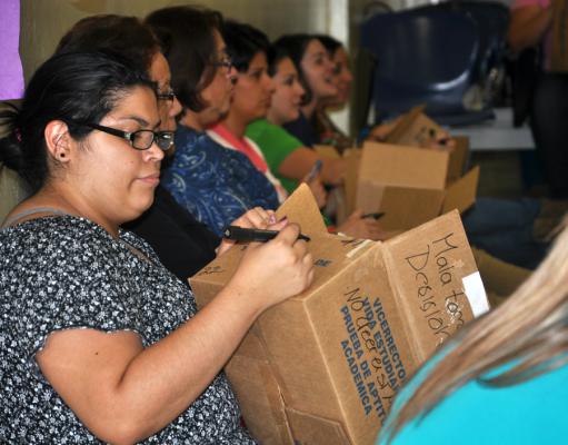 “Les estamos enseñando diferentes técnicas con materiales de reutilización, como bolsas plásticas, cajas, cartuchos, rollos de papel higiénico... La idea es que lo aprendan a hacer acá para que luego ellos, en su contexto, con la materia que dan, ya con la parte teórica, logren adaptar esta enseñanza”, explicó Miriam Brenes, integrante de la Subcomisión y docente en el TEC.