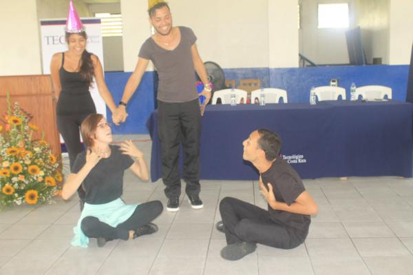 Durante el acto inaugural los estudiantes disfrutaron de la obra de teatro “En Línea” la cual hace un llamado a realizar un uso adecuado de las tecnologías en los campos laborales, educativos y personales. Esta puesta en escena fue desarrollada por los alumnos Gabriel Arnáez, María Fernanda Barrantes, Edder García, Mainor Ramírez y Geraldo Quirós, integrantes del grupo de teatro del Centro Académico de Limón.
