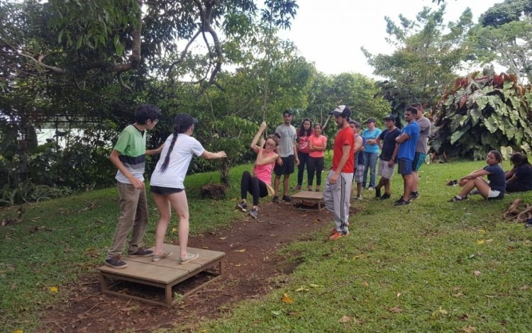 Los estudiantes de las Sedes y Centros Académicos del TEC disfrutaron del juego "uno arriba y uno abajo", en el Campamento Integra TEC 2018. Foto cortesía de Integra TEC.