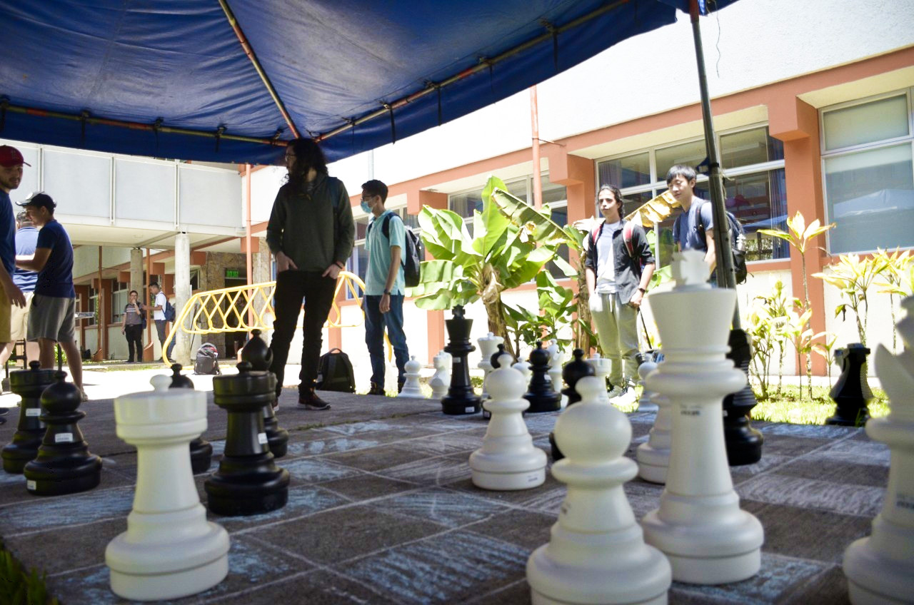 Para conmemorar el inicio del segundo semestre de manera presencial, los estudiantes de computación contaron con diversas actividades para conocer sobre habilidades blandas y extracurriculares como el ajedrez gigante. Foto tomada por Mariana Torres.