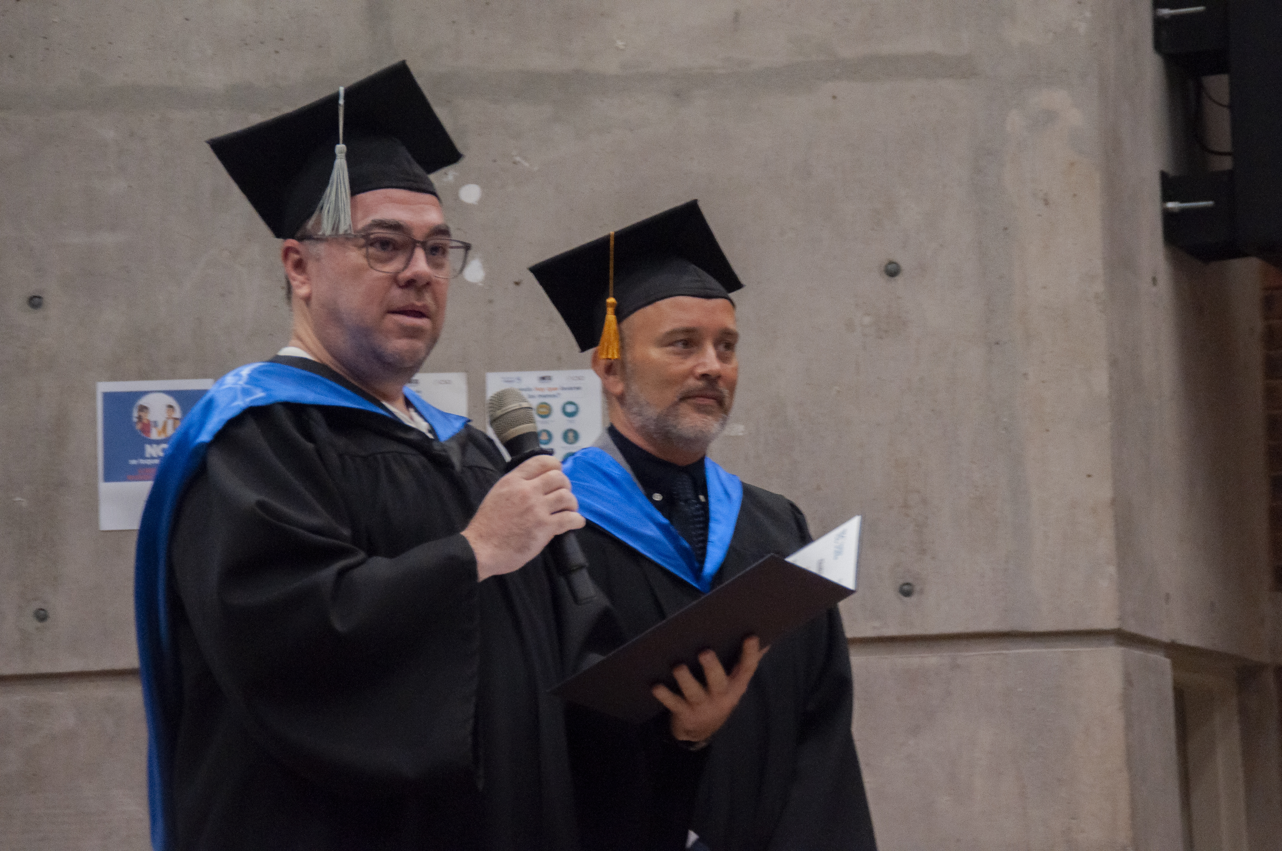 Fernando Ugalde fue quien dio el discurso en representación de las personas graduadas en la ceremonia. Se enfocó en impulsar a sus compañeras y compañeros a seguir creciendo, seguir aprendiendo y aceptar con alegría la responsabilidad de ser profesionales TEC.
