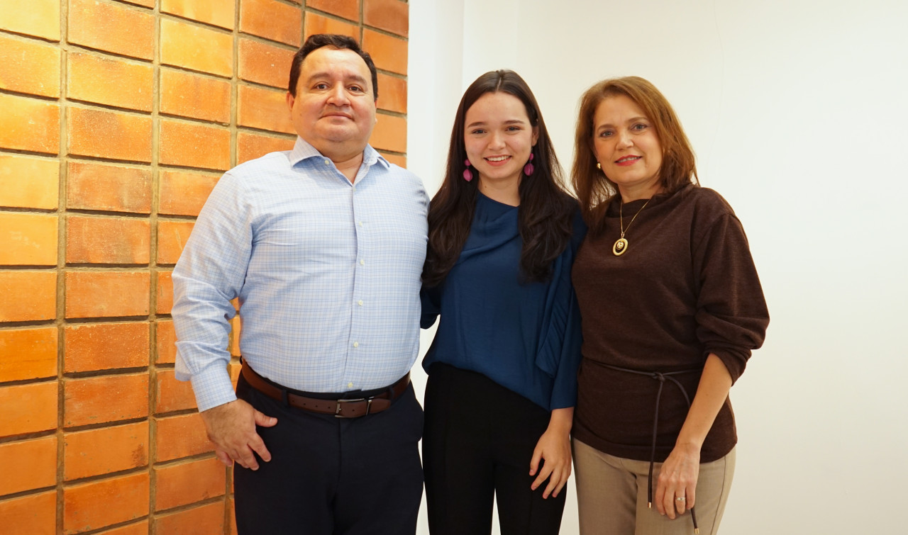 Andrea Ebanks junto a sus padres Giovanni Ebanks y Carolina Reyes, en el acto de reconocimiento de los mejores puntajes de admisión al TEC 2025-2026. Foto: Pablo Quesada/TEC.
