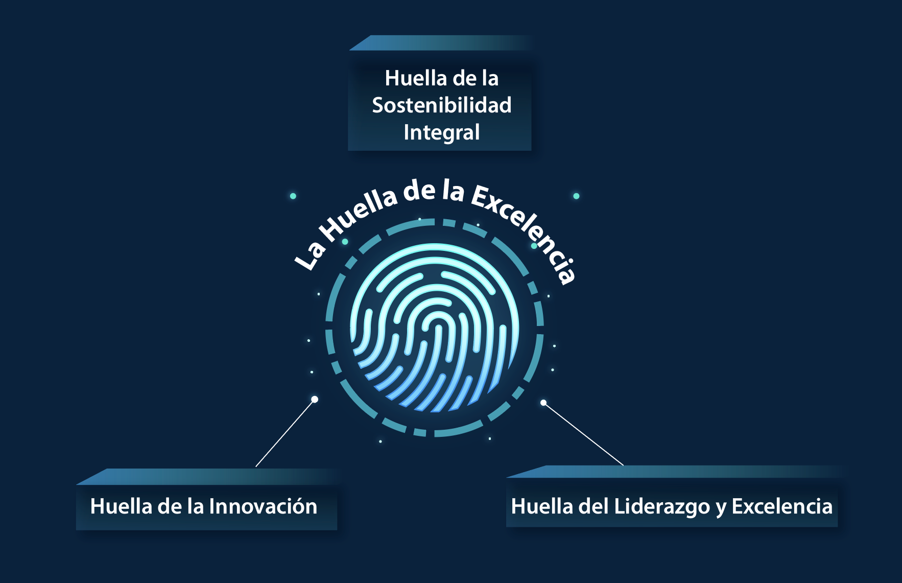 HUELLA DE LA SOSTENIBILIDAD INTEGRAL: Integrar la calidad con la responsabilidad social y ambiental para logra la "Huella de la Excelencia". El propósito es que la excelencia se extienda más allá de la rentabilidad, impulsando prácticas éticas, la gestión eficiente de recursos y una contribución positiva al bienestar social, asegurando una licencia social para operar a largo plazo