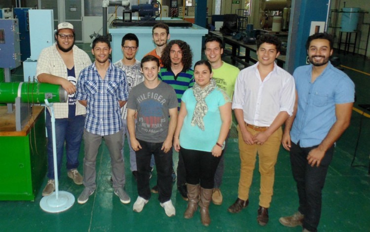 Estudiantes de Ingeniería en Mantenimiento Industrial participantes en el proyecto e.Wave, al fondo Jorge Obando; en la fila del centro, Ivan Segura, Anthony Fuentes, Carlos Coto, Andrés Rodríguez, Luis Chevez y Víctor Vargas y al frente, Luis Rojas, Fernando Álvarez y Melany Carvajal. (Fotografìa cortesía de los integrantes del proyecto).