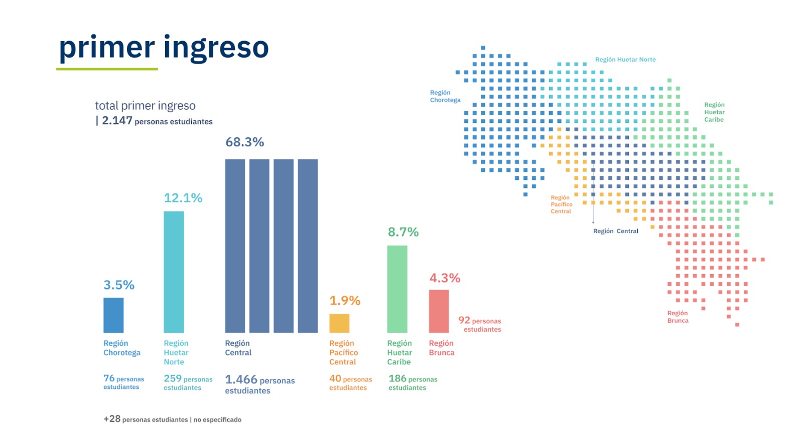 Asimismo, un 45,48% de las personas estudiantes de nuevo ingreso corresponde a primera generación universitaria, es decir, sin antecedentes familiares en educación superior.