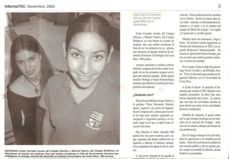 El proceso de  admisión del Tecnológico de Costa Rica (TEC) para el periodo 2003-2004 marcó como protagonistas a dos jóvenes estudiantes que obtuvieron la nota perfecta en el examen de admisión que año a año habilita esta Casa de Estudios para quienes desean ingresar a cursar una carrera de grado.