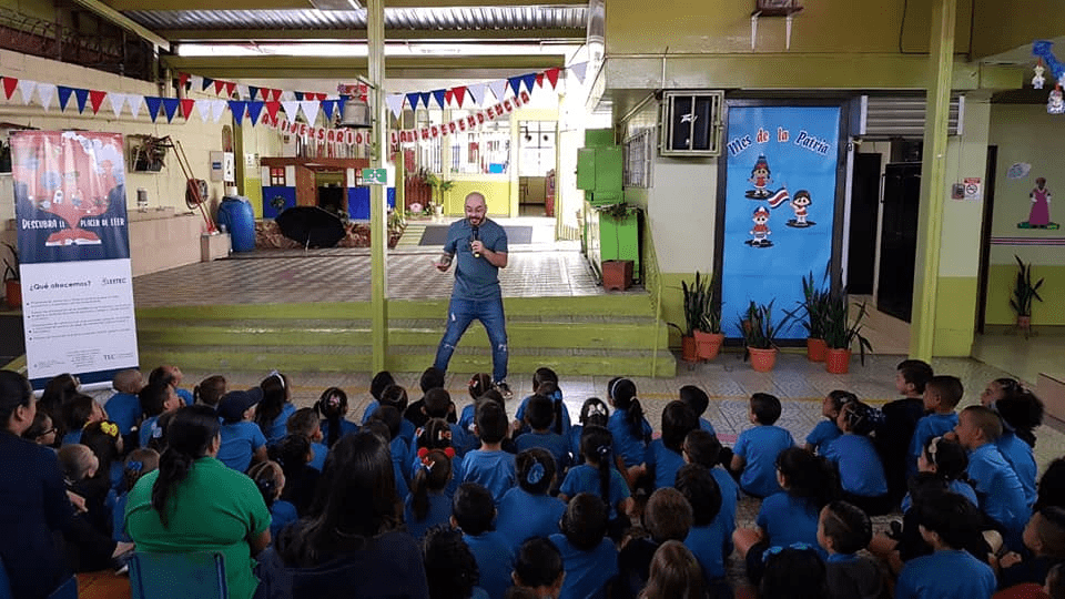 El lanzamiento de LEETEC se realizó a finales de septiembre y contó con la presencia del cuentacuentos colombiano Santiago Cano, quien se presentó en varias escuelas y jardines de niños de Cartago. Foto cortesía de Olga Solano.