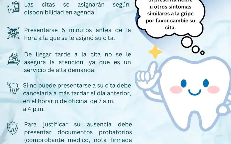 La cita de atención en el servicio de odontología se brinda mediante los siguientes pasos: