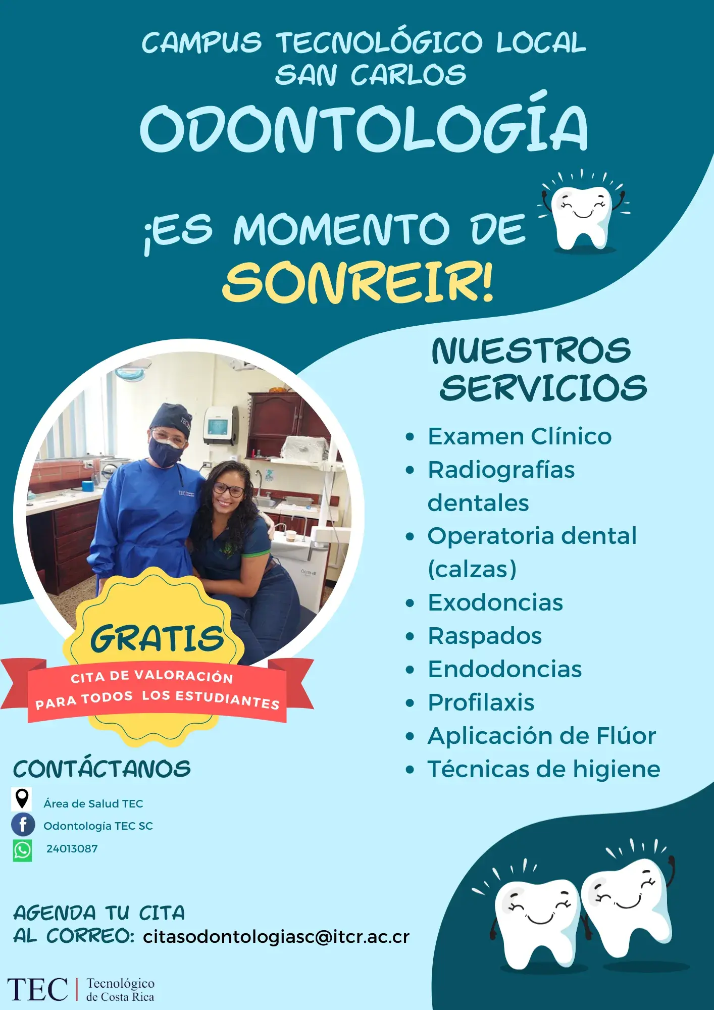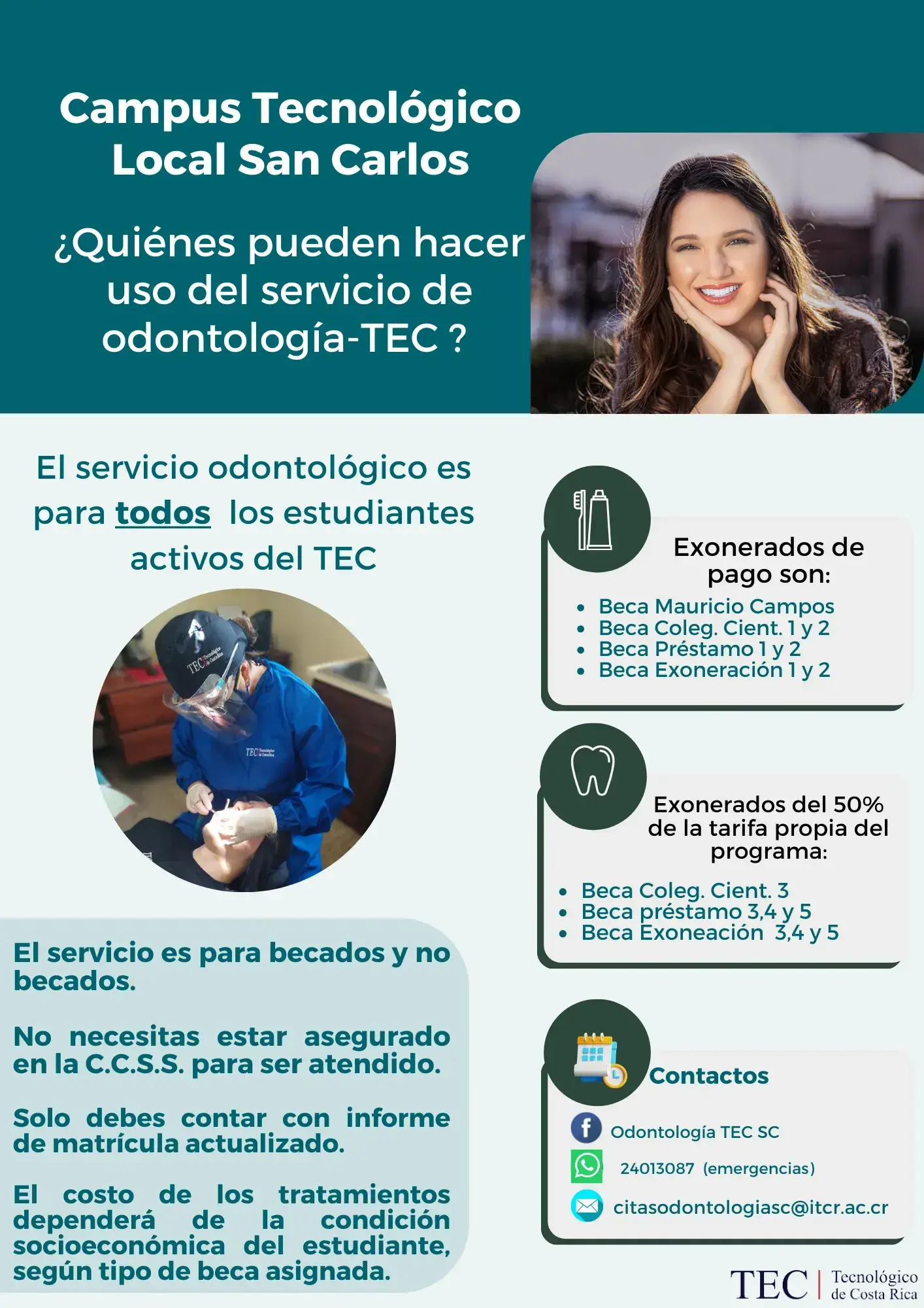 El servicio odontológico es para todos los estudiantes activos del TEC (tanto becados como no becados). No se necesita que la persona estudiante esté asegurada en la C.C.S.S. para ser atendido, solo debe contar con el informe de matrícula actualizado.
