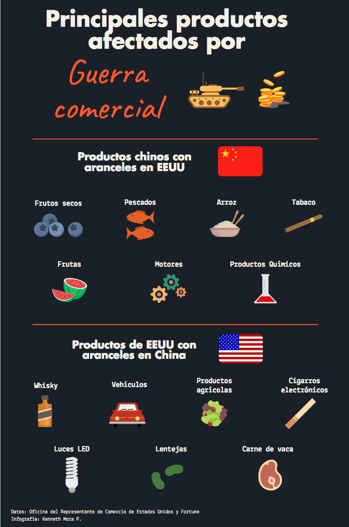 Como parte de las acciones de la Oficina del Representante de Comercio de los Estados Unidos, este organismo publicó un documentos de 205 páginas que detalla todos y cada uno de los productos chinos que sufrirán el impuesto adicional en su llegada a suelo americano. Entre los que destacan están el arroz, todo tipo de pescados, frutos secos, vegetales y frutas así como el tabaco, los cuales serán más caros comprarlos.