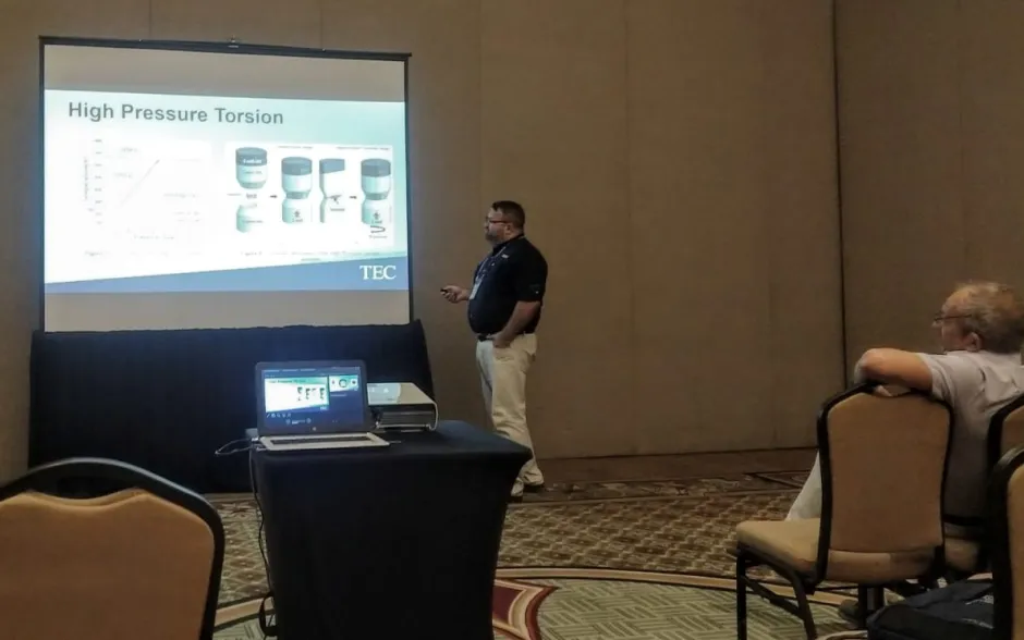 El M.Sc. Adrián Quesada Martínez realizó una presentación oral titulada "Characterization of a 10-ton High-Pressure Torsion equipment to generate phase transformations in commercially pure titanium". Además, se contó con la participación del profesor de la Escuela de Química el Dr. Ricardo Starbird Pérez, quien realizó una presentación oral titulada "Conductive porous material produced by biopolymer aerogel as template and its potential application in biomedical field".