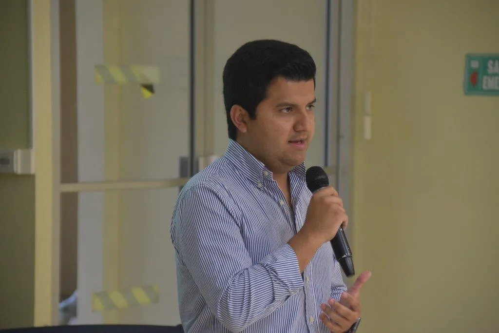 Durante la charla el expositor aprovechó para mostrar a estudiantes, especialmente del nivel básico de la carrera, el quehacer de su empresa y expuso el papel que desempeñan los ingenieros en materiales para su proceso productivo.