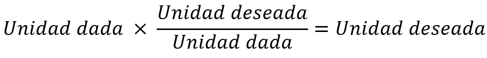 En general, iniciamos cualquier conversión examinando las unidades del dato dado y las unidades que queremos. Luego nos preguntamos con qué factores de conversión contamos para ir de las unidades de la cantidad dada a las de la cantidad deseada. Cuando multiplicamos una cantidad por un factor de conversión, las unidades se multiplican y dividen como sigue: