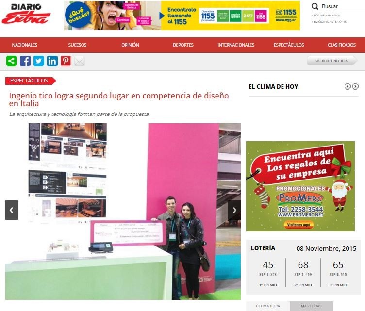 También, el Diario Extra resaltó en un artículo el ingenio de los arquitectos costarricenses, que les permitió sobresalir en el prestigioso evento desarrollado en Milán, Italia.