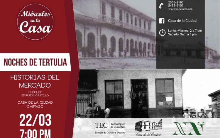 La Casa de la Ciudad del Tecnológico de Costa Rica (TEC) le invita a participar en la primera Noche de Tertulia “ Historias del Mercado”, conducida por Eduardo Castillo.